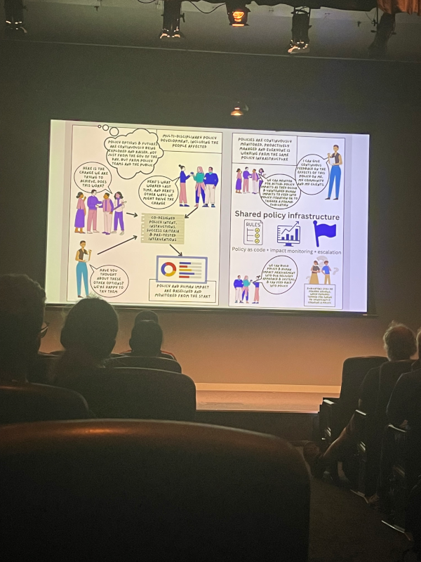 After lunch, I couldn't miss a talk by Pia Andrews, the mind behind GovHack, one of my favourite hackathons. Her talk about government policy was quite important. With the government rolling out policies that affect many people, and not monitoring their issues much at all, Pia was talking about how to minimise the issues that policies create by suggesting ideas like feedback systems and software to help people navigate the complexities of these policies. Stuff that really should happen.