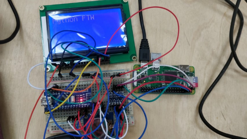 Sending a string from Python on the Raspberry Pi to the Arduino and displaying it on the LCD. The LCD is a ST7920 and I'm using the u8glib library.