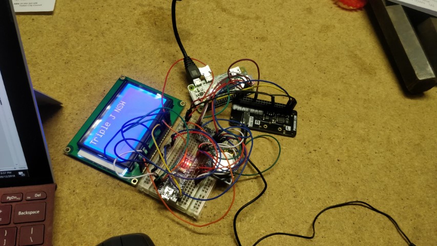 I installed Mopidy and python-mpd to read the current radio station name from Python, and send it to the Arduino and LCD via the I2C bus.